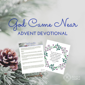 This devotional will help you to experience the love, peace, hope, and joy that Jesus brings, especially in the midst of this busy time of year. Each weekday, you will find a scripture reading, along with a short devotional thought and reflection questions to help you engage with the story of Jesus’ birth and what that means for us today. At the end of each week you’ll also find an experience guide, with suggestions for ways to apply what you’ve learned throughout the week. As you go through this study and encounter God through His Word, it is our prayer that you will experience His love and remember when God came near.